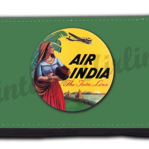 This wallet ffeatures a vintage 1950’s bag sticker used by QANTAS Airways.