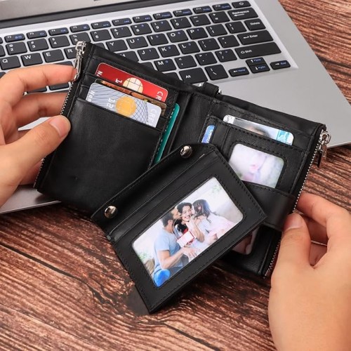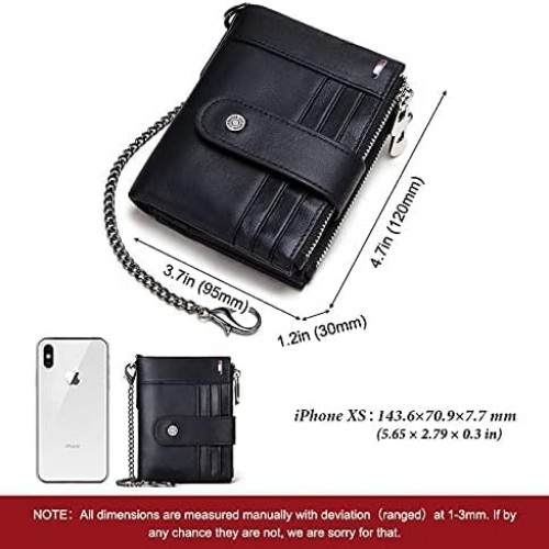 - [Convenience] This wallet offers the perfect combination of security and convenience. The chain adds practicality, allowing you to carry your wallet with ease, while the bifold design ensures quick access to your cards, coins, and cash