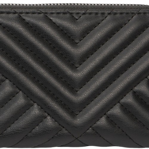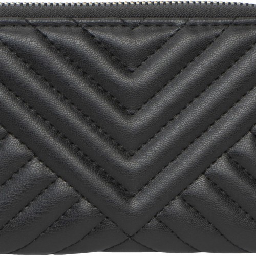 Bring a modern touch to your essentials with the Rebecca & Rifka Smooth Abstract Tubular Quilt Chevron Faux Vegan Leather Indexer Wallet. Made from high-quality faux vegan leather featuring a sleek smooth abstract tubular quilt chevron design, this wallet is both durable and stylish. The front is adorned with the signature Rebecca & Rifka gold medallion, adding a sophisticated, signature flair. With a compact indexer size, this wallet offers plenty of organization with card slots, cash compartments, and a zippered coin pocket, keeping everything in place while maintaining a slim profile.