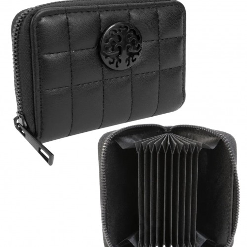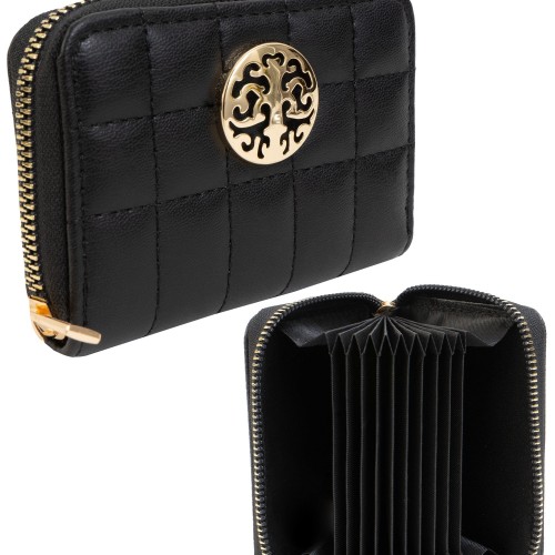 Add timeless elegance to your accessory collection with the Rebecca & Rifka Smooth Boxed Quilt Medallion Zip Accordion Wallet. Made from high-quality faux vegan leather with a smooth, boxed quilt pattern, this wallet exudes sophistication and durability. The front features the signature Rebecca & Rifka gold medallion, elevating its chic design. The accordion-style interior expands to provide plenty of room for your cards, cash, and coins, while the zip-around closure ensures everything stays securely in place. With its modern design and ample storage, this wallet is both practical and stylish.