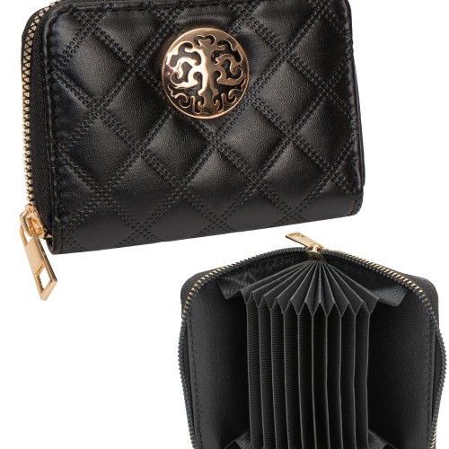 Stay stylishly organized with the Rebecca & Rifka Diamond Quilted Signature Medallion Accordion Wallet. Crafted with a luxurious diamond-quilted design and adorned with the brand’s signature medallion, this wallet blends timeless elegance with everyday functionality. Its accordion-style interior expands to provide easy access to your essentials while keeping everything neatly in place. Perfect for those who love compact organization without sacrificing style.