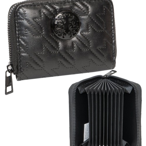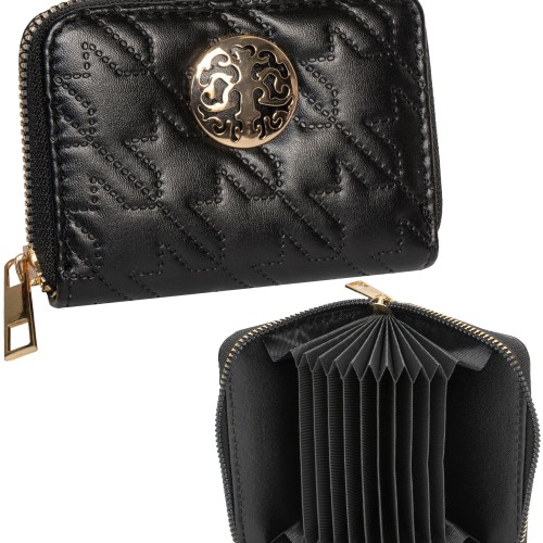 Add a touch of sophistication and organization to your essentials with the Rebecca & Rifka Smooth Houndstooth Quilt Medallion Accordion Wallet. Designed with a chic smooth houndstooth quilt pattern and the signature medallion, this wallet combines timeless style with functionality. Made from high-quality faux vegan leather, it offers durability and luxury while being cruelty-free. The accordion-style interior expands to reveal multiple compartments for cards, cash, and a zippered coin pocket, keeping everything neatly organized and easily accessible.