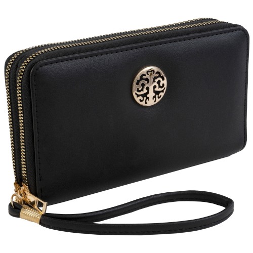 Elevate your everyday style with the Rebecca & Rifka Smooth Vegan Faux Leather Double Zip-Around Wristlet Wallet. This sleek, stylish wallet is crafted from smooth vegan faux leather and offers practicality with a luxurious touch, making it the perfect companion for on-the-go living.