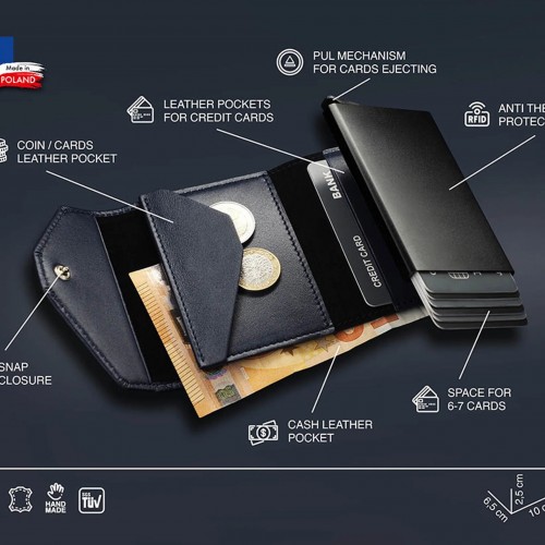 Made from soft to the touch, exclusive Italia leather. The meticulous finishing and subtle stitching will satisfy any lover of perfect detail. Large capacity: the wallet will store many cards and notes, as well as the necessary coins – in an elegant internal pocket. Easily accessible: the special gradual ejection mechanism allows you to quickly reach the card you are looking for.
