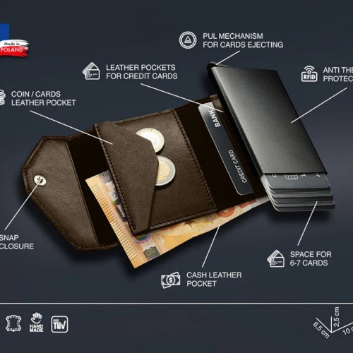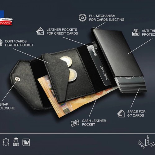 Made from soft to the touch, exclusive Italia leather. The meticulous finishing and subtle stitching will satisfy any lover of perfect detail. Large capacity: the wallet will store many cards and notes, as well as the necessary coins – in an elegant internal pocket. Easily accessible: the special gradual ejection mechanism allows you to quickly reach the card you are looking for.