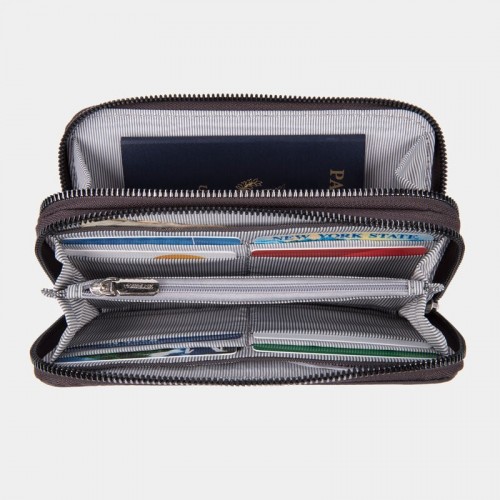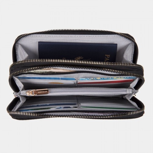 • Features 12 card slots, 3 currency or receipt pockets, zip pocket for coins and rear slip pocket