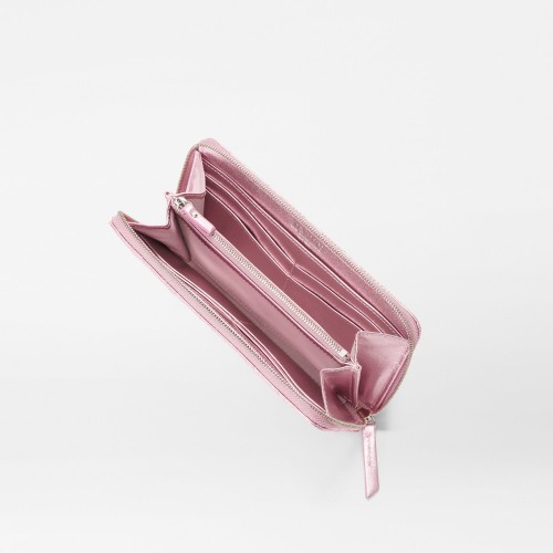 The Long Zip Round Wallet is a refined essential with the feel of a mini bag—quilted leather, pink edge dye, and a full zip closure. Inside, two billfolds, eight card slots, and a coin pocket keep things orderly.