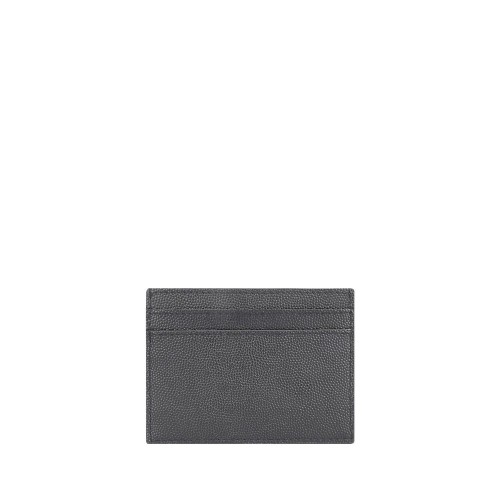 Black Calfskin Card Holder by Saint Laurent, card slot on both sides, black embossed logo on front.