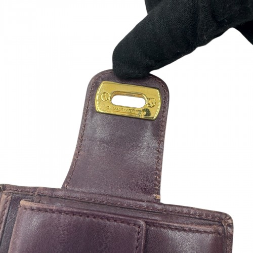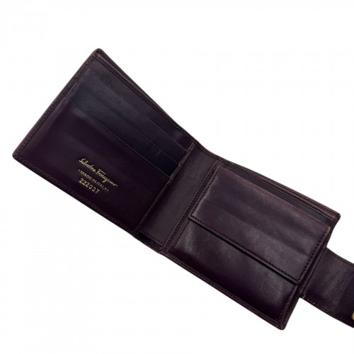 Crafted from rich brown calf leather, this classic Ferragamo wallet features the signature gold-tone Gancini clasp closure.