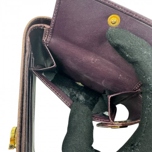 7.5/10 – Decently used condition with light surface marks and patina on hardware consistent with age. Interior of coin pouch is sticky and degraded