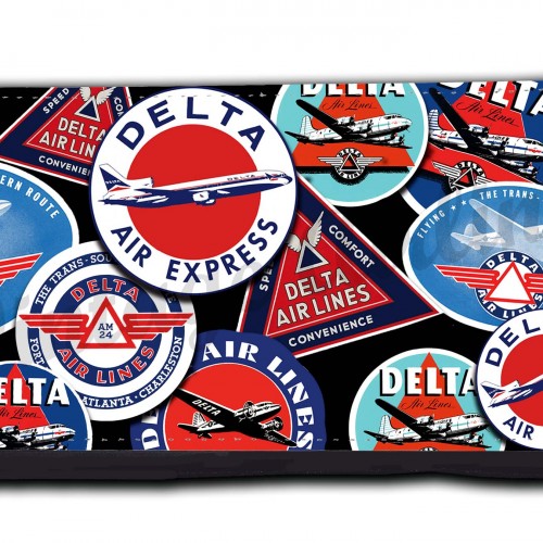This wallet features the image of a Royal Viking bag sticker used by Scandinavian Airlines (SAS).
