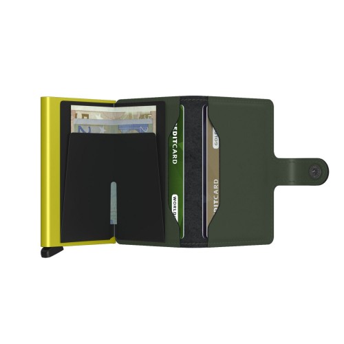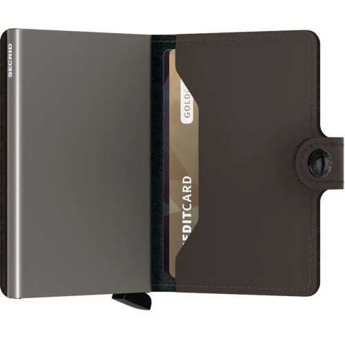 Small in size and surprisingly large in storage capacity, the Miniwallet combines the best of both worlds. The exterior holds banknotes, receipt and cards, while the aluminium Cardprotector allows you to slide out cards with one simple motion and protects them from bending, breaking and unwanted wireless communication.