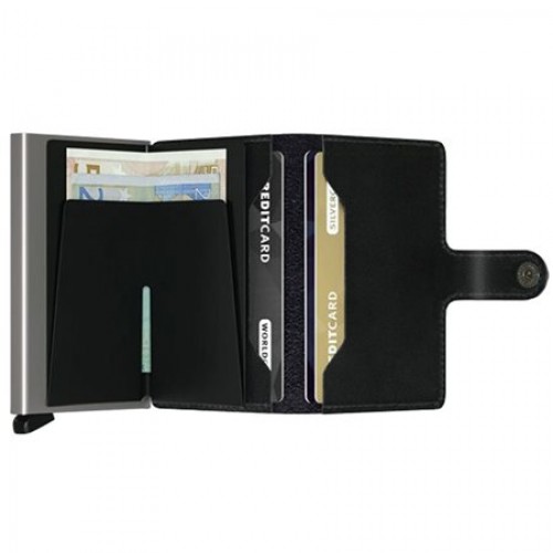 Small in size and surprisingly large in storage capacity, the Miniwallet combines the best of both worlds. The exterior holds banknotes, receipt and cards, while the aluminium Cardprotector allows you to slide out cards with one simple motion and protects them from bending, breaking and unwanted wireless communication.