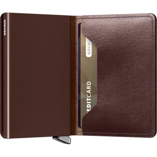 Each Slimwallet has the aluminum Cardprotector inside. The patented mechanism provides a simple and fast access to your cards. Push the lever and the cards slide out smoothly, ready for immediate use. The strong case protects the cards against bending, breaking and unauthorised wireless scanning.