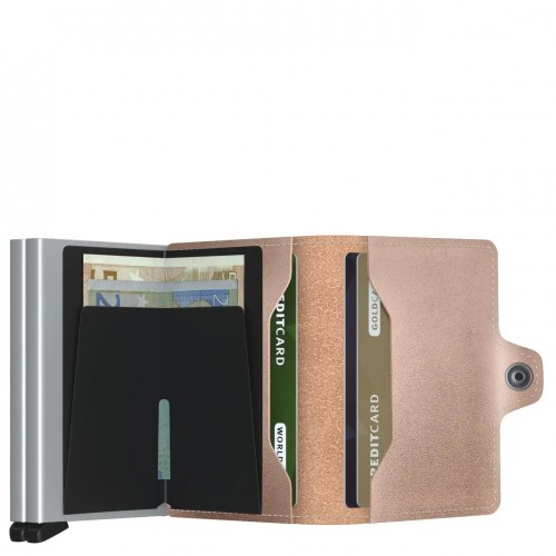 The Secrid Twinwallet consists of two of their trademark Cardprotectors in a leather pouch with press stud closure. With the Twinwallet, you can securely take eight to twelve cards with you. The leather surround also offers space for extra cards, cash, receipts, and business cards.