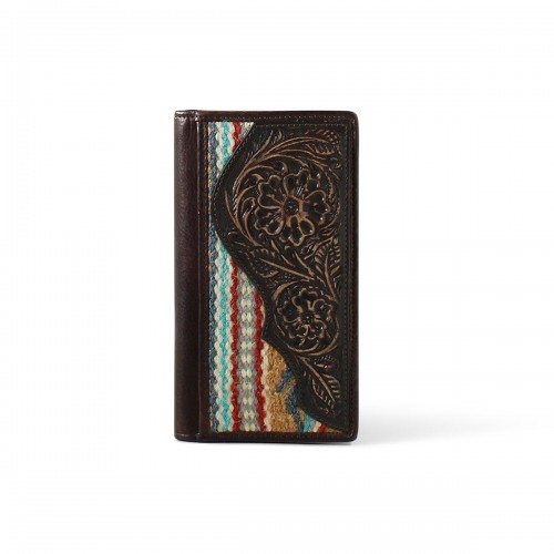 Cowboy prayer motif with an engraved scrolling background in antique silver. Domed nail head accents on top and bottom with rope engraving accent on the sides. Black carbon fiber back with a stainless-steel money clip.