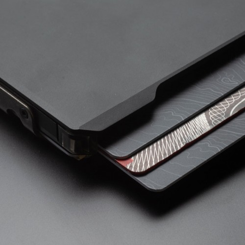 For those who demand even more from their carry, the SK1 is also available with an integrated titanium clip — a robust and lightweight addition that can securely hold up to 10 folded bills and additional cards or documents. Thoughtfully designed ventilation slots and precision-cut notches enhance both form and function: improving grip, reducing bulk, and allowing essential documents to be held tightly in place without compromise.