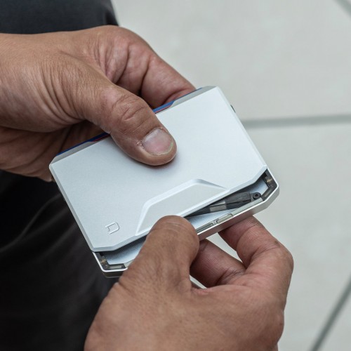 SK1 Slide Kick Wallet is built for those who value function over flash. Machined from aerospace-grade aluminum, it introduces a new way to access your cards with a patented rail system that keeps everything smooth and secure.