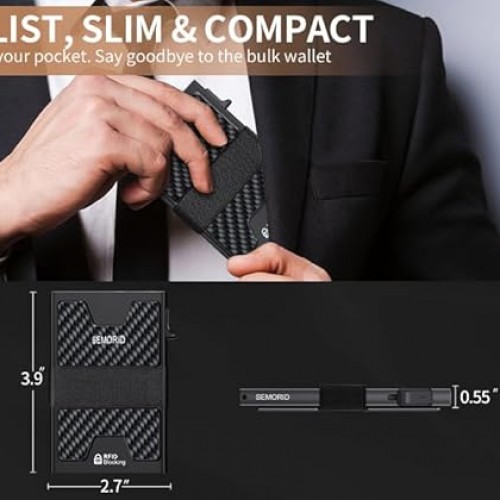 Slim Wallet for Men, Minimalist RFID Blocking Mens Wallet with Pop Up Case, Thin Metal Credit Card Holder with Cash Strap & Expandable Backplate – Holds 12 Cards