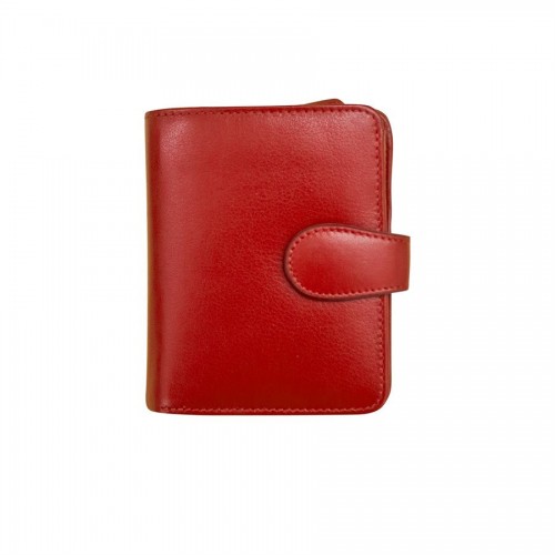 Genuine leather wallet with RFID blocking lining, tab closure and zip pocket.