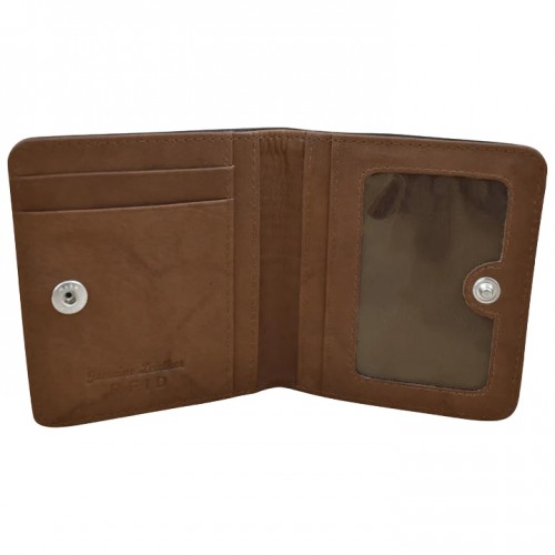 Interior ID window, credit card slots, and open pocket for currency