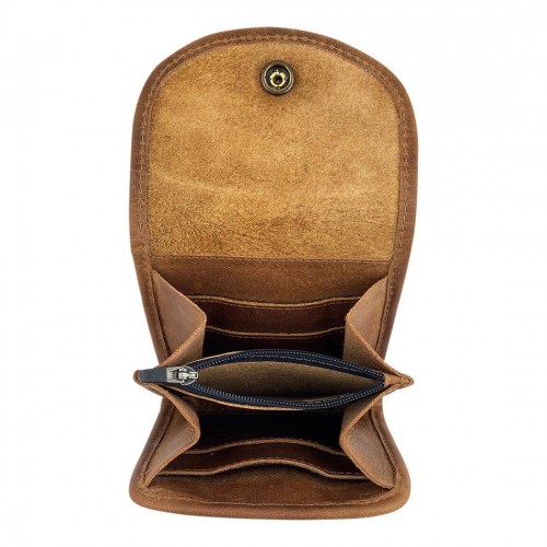 - COMPACT STORAGE: This Snap Wallet is handmade from full grain leather and features a snap button closure, sleeve pockets for cards, id, cash, as well as one zippered pocket for change. This pouch is large enough to store personal items and valuables but small enough to fit in a larger bag or carry in your hand. This Snap Wallet will keep your things securely in one place while looking stylish. Made of beautiful, durable leather, this wallet is sure to last you many years and uses.