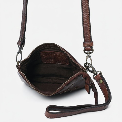 Spaghetti Western Swc196Brn Wallet Vintage Handmade Drum Dyed Genuine European Cowhide Leather Women Bag Western Handbag Purse