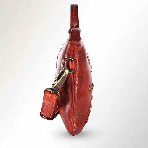 The Spaghetti Western creations undergo a meticulous hand-dyeing process utilizing an individualized method. Each creation is meticulously guided through multiple stages, featuring a proprietary approach involving hand dyeing, buffing, brushing, and finishing. This process demands significant time and attention to detail. Nonetheless, the outcome is a captivating blend of vintage and patina aesthetics, ensuring that each creation possesses its own unique and exclusive appearance.