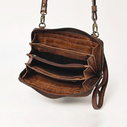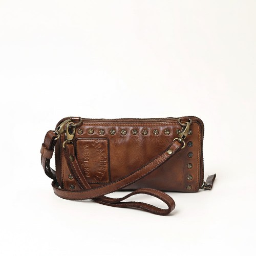 Spaghetti Western Swc212Brn Wallet Vintage Handmade Drum Dyed Genuine European Cowhide Leather Women Bag Western Handbag Purse
