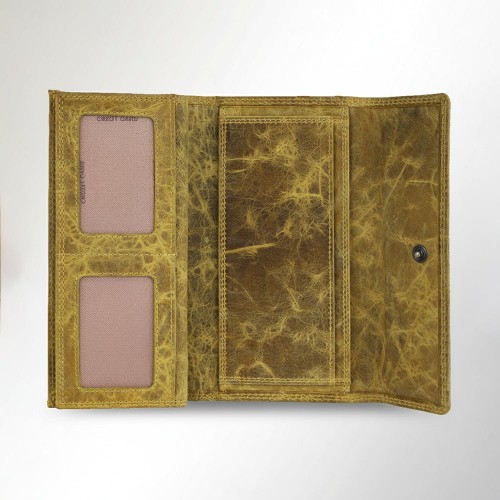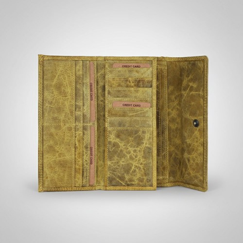 Spaghetti Western Swc458Ylo Wallet Vintage Handmade Drum Dyed Genuine European Cowhide Leather Women Bag Western Handbag Purse