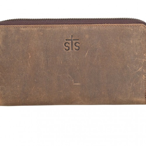 STS Ranchwear Womens Bentley Distressed Brown Cowhide Zip Around Wallet