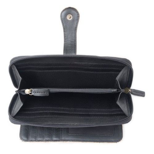 A voguish addition to your wardrobe with intricate weaving detail on border. This wallet is resistant to RFID skimming and comes with a zippered compartment to keep your belongings safe