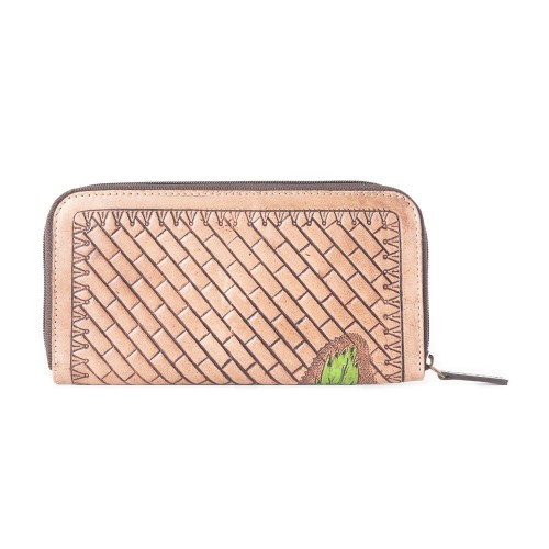 This lovely wallet has a light bown and sandy background that looks like wood in texture with its main attraction being the sunflowers drawn over it.