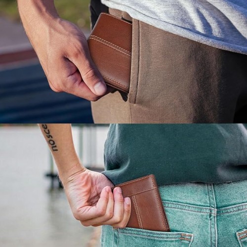 - Genuine Leather: Crafted from premium cowhide leather, our wallet is soft and smooth to touch. The exquisite stitching process and design give it a sophisticated look. Whether you’re holding it in your hands or slipping it into your pocket, it feels comfortable natural without any bulk or discomfort