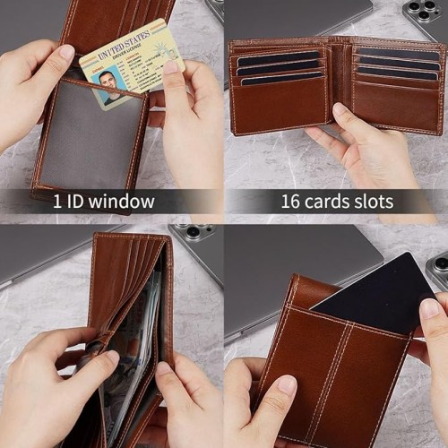- Minimalist Practical Design: The wallet have 10 card slots, 4 hidden slots, 1 back card slot, 2 cash pockets, 1 ID window. It can hold a total of 15 cards. Classify money and cards, easy to put in and take out, you’ll have plenty of space to store all your cards and cash. Say goodbye to cluttered and bulky wallet