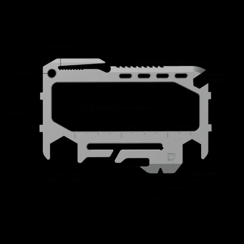 - Available with a removable, heat treated, CNC’d high carbon stainless steel multi-tool with over 14 functions. Some functions include a serrated and sharpened edge, paracord tensioner, 10/15mm hex, smartphone stand, nail pryer, ruler, etc. The multi-tool is easily removable from the wallet and can be either checked or left at home when traveling.