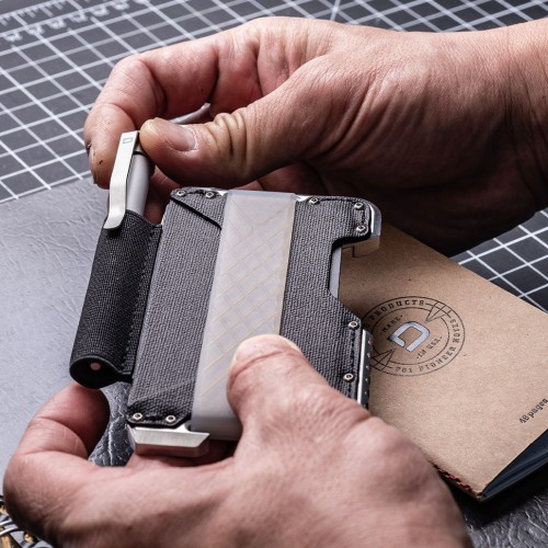 The wallet is equipped with a clear silicone band and a DTEX single pocket, offering a perfect balance of strength and flexibility to hold your essentials securely. The T01 also boasts a custom pen holder, making it even more versatile and practical for everyday carry. Included with the T01 is the CNC-machined, precise anodized Dango Mini Pen, ensuring you always have a high-quality writing tool at your fingertips. Additionally, each wallet comes with a 48-page Pioneer notebook.