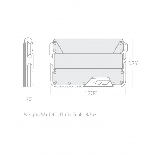As in all Dango T01 Tactical Wallets, the T01 Spec-Ops also comes with the MT02 Multi-Tool, which has over 14 functions built in. The tool tucks away into the card slot and locks into the frame when in use. Functions of the multi-tool include: hex wrenches, paracord tensioner, cutter, nail pryer, serrated/sharpened edges, a ruler and even a phone stand.