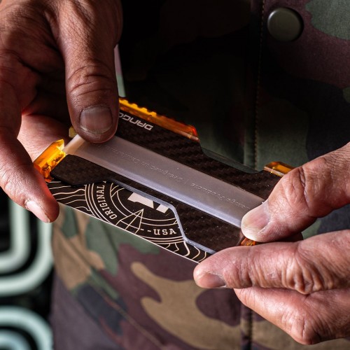 The T01 Ultem® Wallet with DTEX pockets and carbon fiber backplate is a premium EDC accessory designed for those who prioritize both lightweight durability and style. Constructed from Ultem, a transparent lightweight yet incredibly robust thermoplastic material, this wallet is exceptionally resilient to daily wear and tear. The DTEX pocket material on the T01 Ultem Wallet provides both resilience and a distinct texture, enhancing grip and resisting wear and water damage. The carbon fiber backplate not only adds a sleek and futuristic aesthetic but also enhances overall structural integrity and RFID protection.