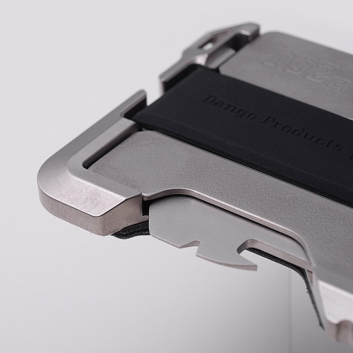 The wallet comes with the 14-function Dango MT02 multi-tool which slides into the card slot. When engaged, the multi-tool can nest securely into the safety locks built into the wallet chassis – allowing for easy sawing, cutting and protection. Common tools are built in: hexes, paracord cutter, nail pryer, a serrated/sharpened edge and even a phone stand.