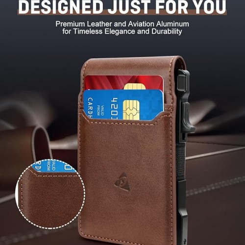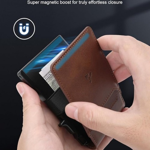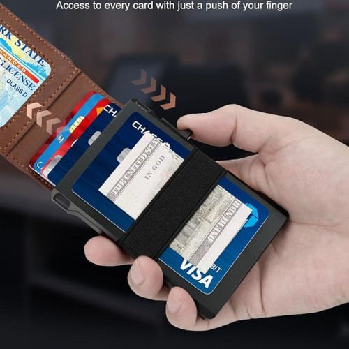 Tactical Wallet for Men, Slim Pop Up Card Holder for 10-12 Cards, RFID Blocking Bifold Minimalist Smart Wallet, Credit Card Holder with ID Window & Cash Strap, Compact Front Pocket Wallets