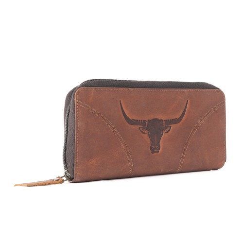 This rugged looking wallet is a great choice for those who love to keep their design sense professional and fashion peaky – this comes with a bull engraved on the top.