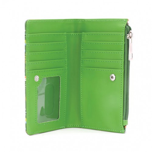 1 ID slot 9 card slots Bill compartment Interior pockets Includes 7in detachable wristlet strap