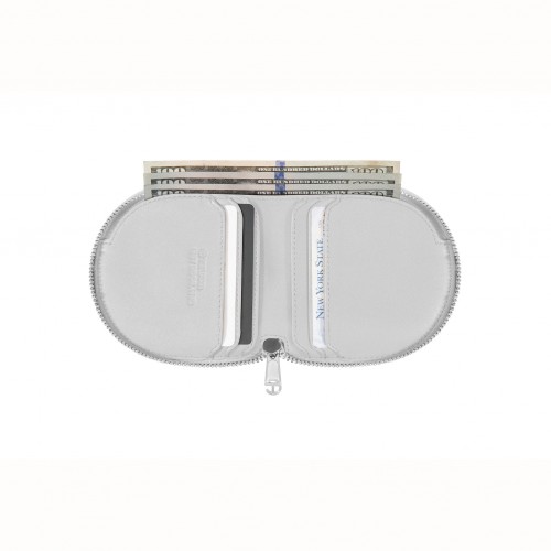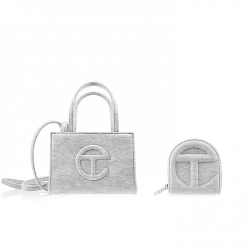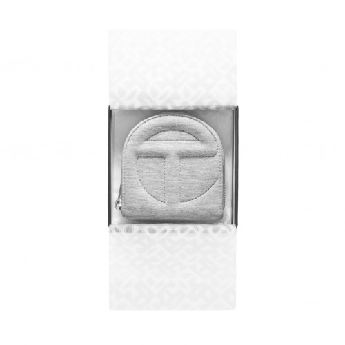 You kept asking us to make a wallet. We took our time and did it right: logo-embossed billfold wallet made from heather grey fleece, with logo zip, six card compartments, generous cash pocket and semi-circular shape make the TELFAR Wallet an instant icon.