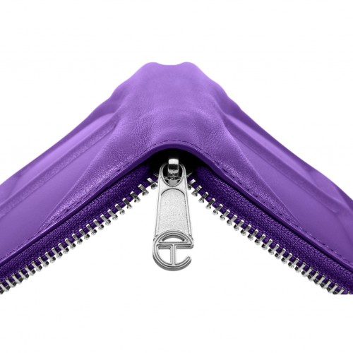 You kept asking us to make a wallet. We took our time and did it right: 100% top grain leather logo-embossed billfold wallet with logo zip, six card compartments, generous cash pocket and semi-circular shape make the TELFAR Wallet an instant icon.