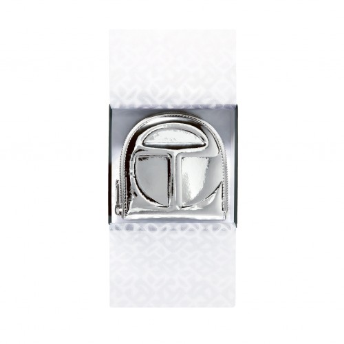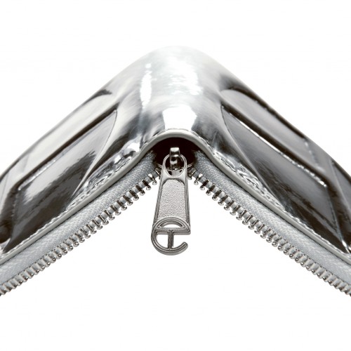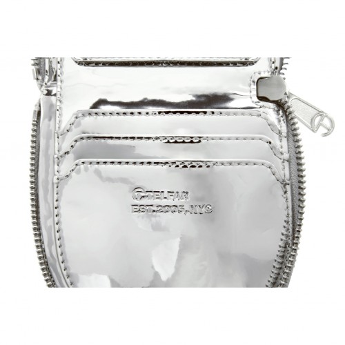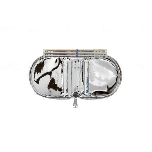 You kept asking us to make a wallet. We took our time and did it right: logo-embossed billfold wallet with logo zip, six card compartments, generous cash pocket and semi-circular shape make the TELFAR Wallet an instant icon.