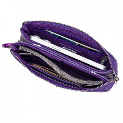 - Inside of the wallet includes 3 credit card holders and a zippered pocket