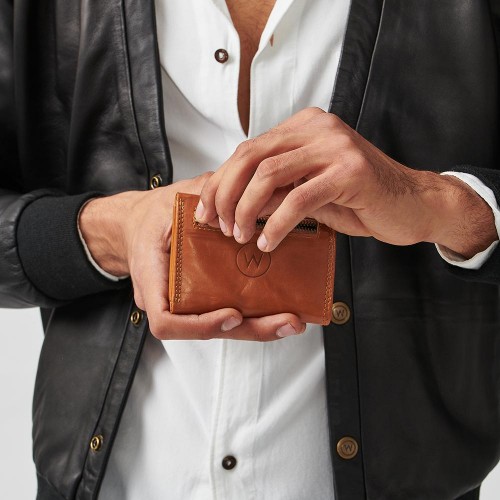 (H 4.3″ x W 3.1″ closed, 9.4″ open) - Soft full grain cow leather