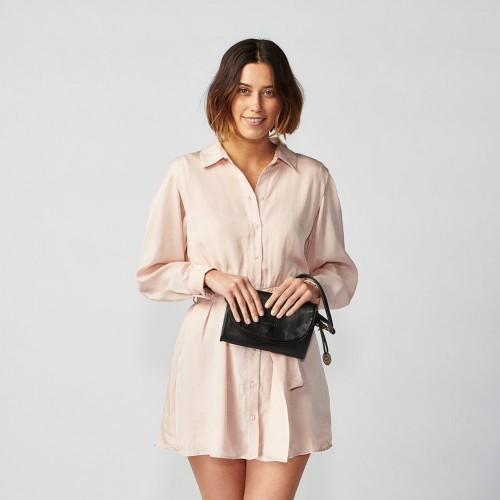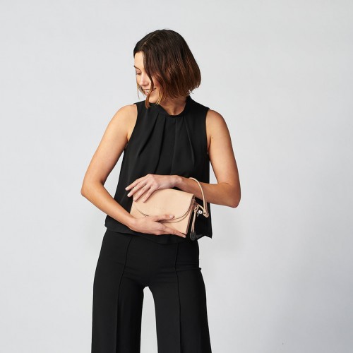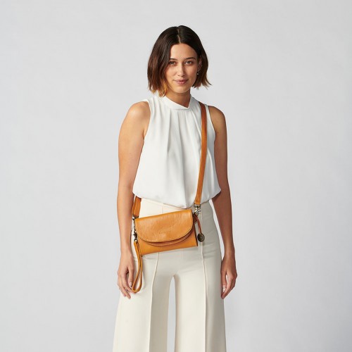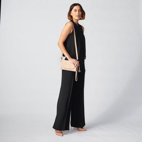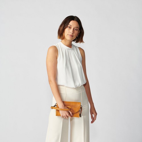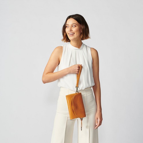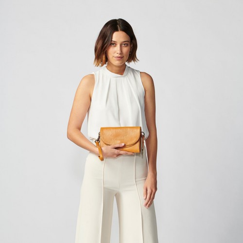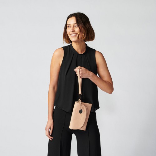 This sleek and yet detailed crossbody is going to be a favourite amongst fashion conscious travellers: it is effectively a large wallet; with beautiful structural details and enough room for your phone and travel essentials. It has 2 buttoned segments, 8 card slots and 1 external zip pocket for safekeeping. The interchangeable crossbody and clutch straps are a bonus feature of what we think could be one of our favourite designs to date.