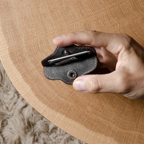 Closed with a pushbutton, the Thumbs Up card case holds around 5 cards and banknotes. It features a pocket on the back of the case and a conveniently placed slot so you can push your cards out with your thumb.